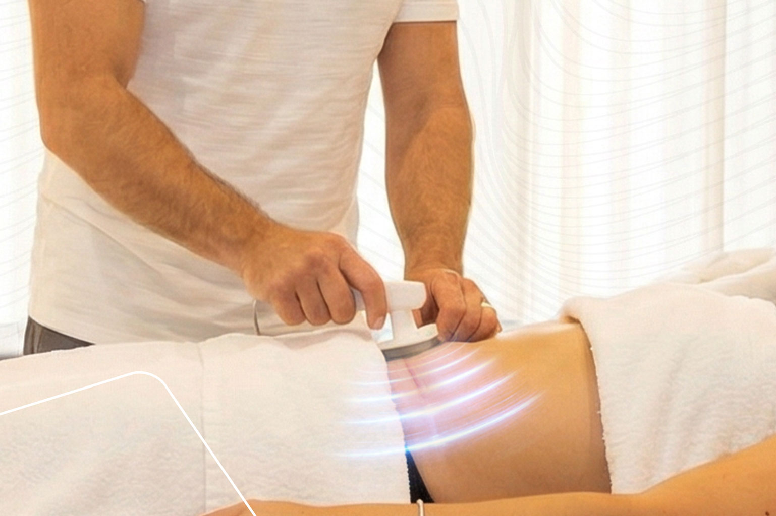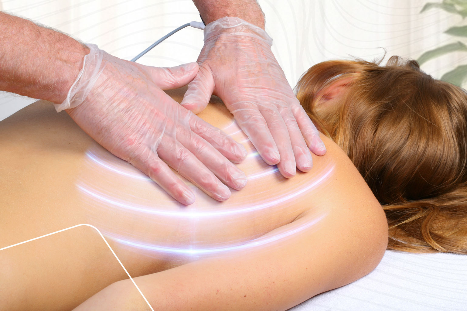 Der Therapeut führt dann entweder mit Handschuhen oder einem Handapplikator kreisende Bewegungen über das zu behandelnde Gewebe aus, wodurch die tiefenwirksame Schwingung aktiviert wird.
