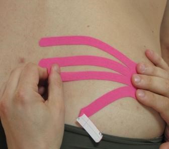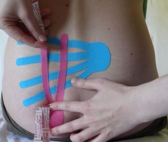 Hat der Therapeut nach einer ganzheitlichen Untersuchung die Ursachen der Problematik determiniert, kann er mit der Behandlung beginnen. Ein Teil der Therapiekette kann dabei aus einer kinesiologischen Tape-Anlage bestehen.