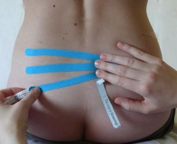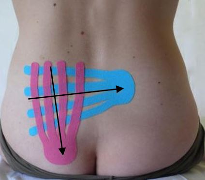 Die lokale Tape-AnlageZwei Fächer, die sich im Bereich des Iliosakralgelenkes kreuzen, haben sich als Standardanlage bewährt. Die betroffene Seite muss allerdings zuerst bestimmt werden, bevor das Tape angelegt werden kann.