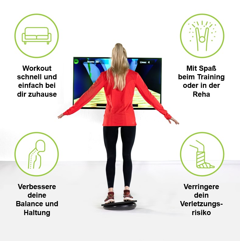 Das Balance-Board ist mit Sensoren ausgestattet, die die Trainingsergebnisse in Echtzeit an die Trainings-App übertragen, sodass der Benutzer seine Fortschritte sofort einsehen kann.