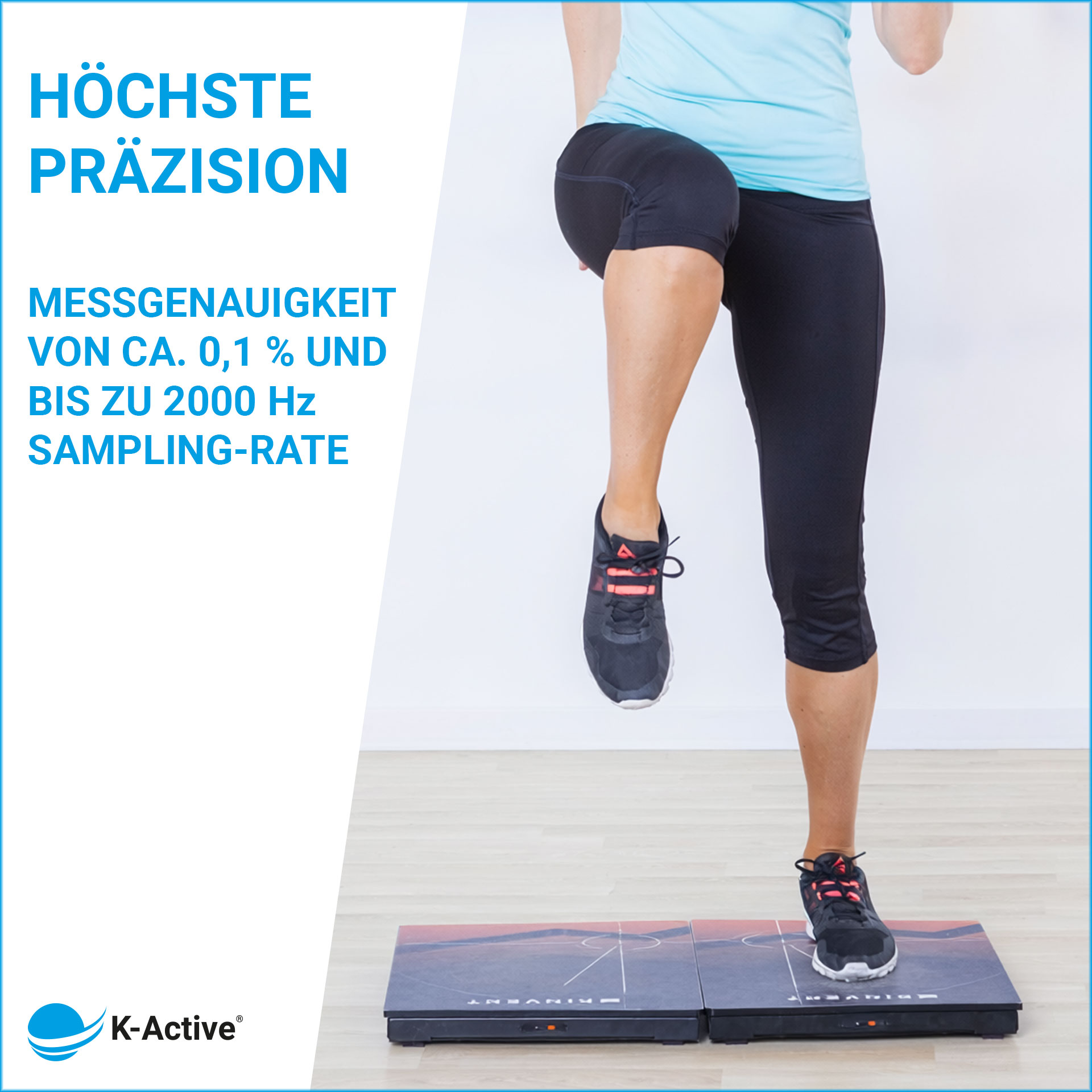 The K-Deltas enable in-depth analysis of established testing protocols such as the Countermovement Jump (CMJ), Squat Jump (SJ), Drop Jump (DJ), as well as various isometric strength tests. Key metrics include maximum force output, impulse, rate of force development (RFD), ground contact time, force-time curves, and lateral asymmetries between the left and right sides of the body.