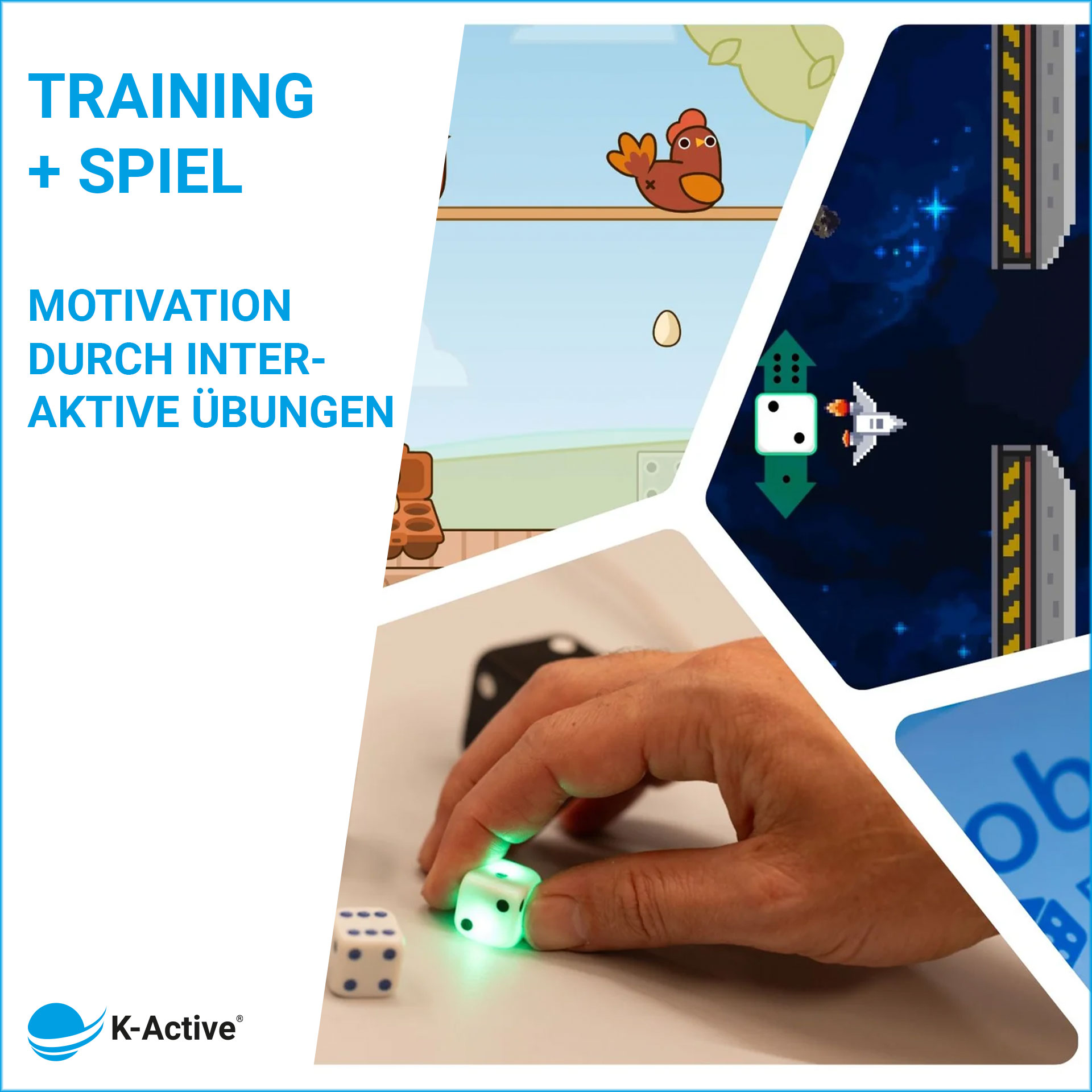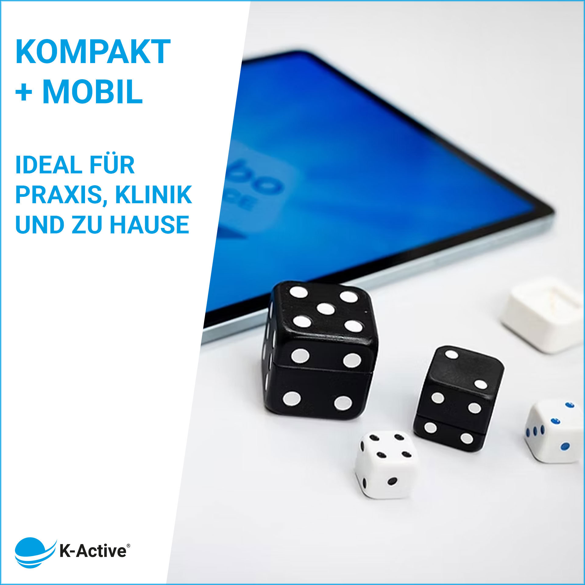 Unsteady movements, rehabilitation phases, or repetitive training exercises can quickly become discouraging. BoBo Dice Pro brings variety, motivation, and measurable progress to your training. This innovative digital dice system combines fine motor skills, hand-eye coordination, and cognitive challenges with interactive games creating an effective and playful training experience.