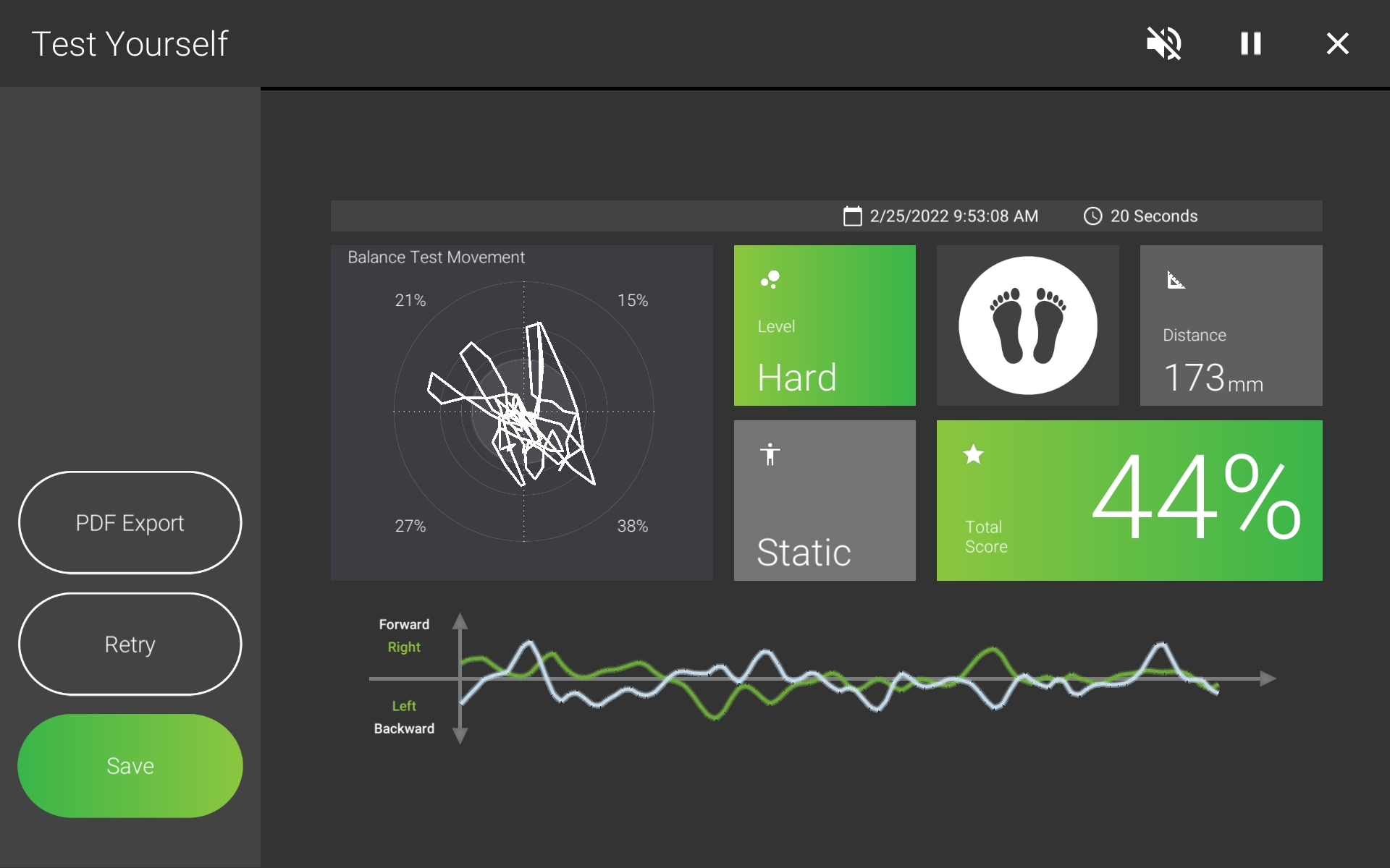 The innovative Bobo® Pro 2.0 app offers a variety of difficulty levels to choose from, both dynamic and static. Regardless of experience level, users can analyze and improve their balance and center of gravity. The app also provides comprehensive statistics on training progress to keep track of performance and effectively monitor goals. The collected data can be easily exported as a PDF to share with trainers or therapists.