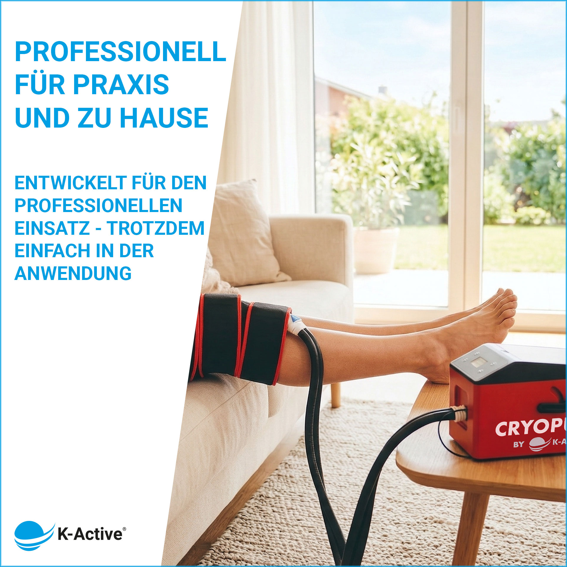 Compact and portable, the cold compression device can be easily integrated into daily practice and is simple to transport. This makes the CryoPush by K-Active ideal for mobile sports care, travel, or as a cold therapy device for post-operative follow-up treatment at home.