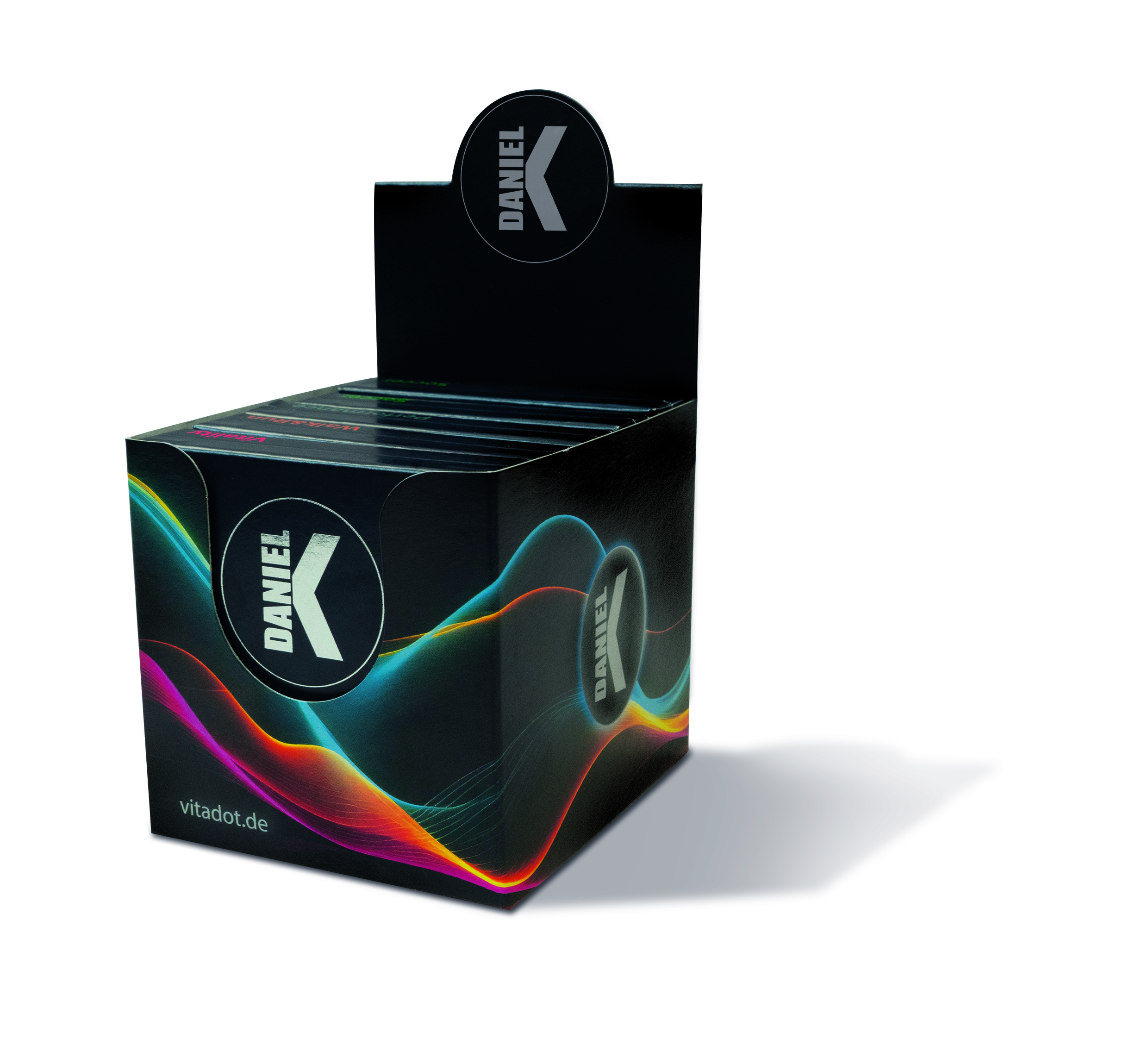 However, users have discovered new and creative applications for the VitaDots® by Daniel Knebel. In particular, the combination with K-Active Tape Elite has proven to be effective, whereby the VitaDots® can now also be applied directly to pain points, trigger points and scar tissue. This targeted application enables an intensified effect of the VitaDots® by delivering balancing vibrations and frequencies directly to the affected areas. This information transfer can accelerate healing processes and lead to noticeable improvements, which underlines the versatility and innovative character of VitaDots® by Daniel Knebel.
