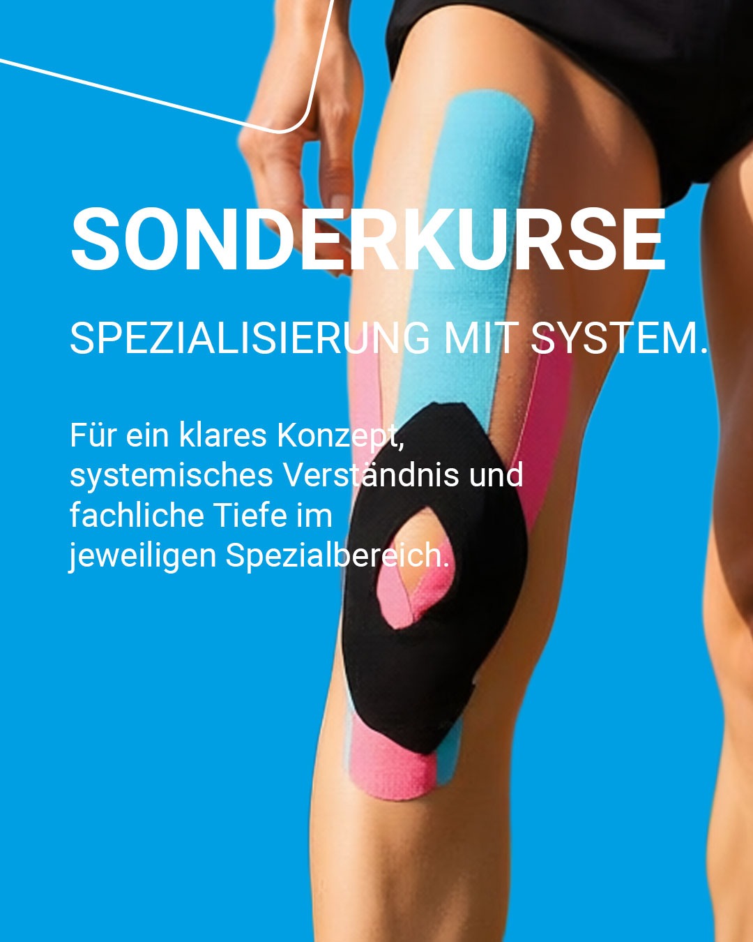 Standardisierte Anwendungen stoßen in spezialisierten Fachbereichen schnell an ihre Grenzen. Die Sonderkurse verbinden deshalb das Fundament des Kinesiologischen Tapings und den ganzheitlichen K-Active®-Ansatz mit den spezifischen Anforderungen der jeweiligen Fachdisziplin: