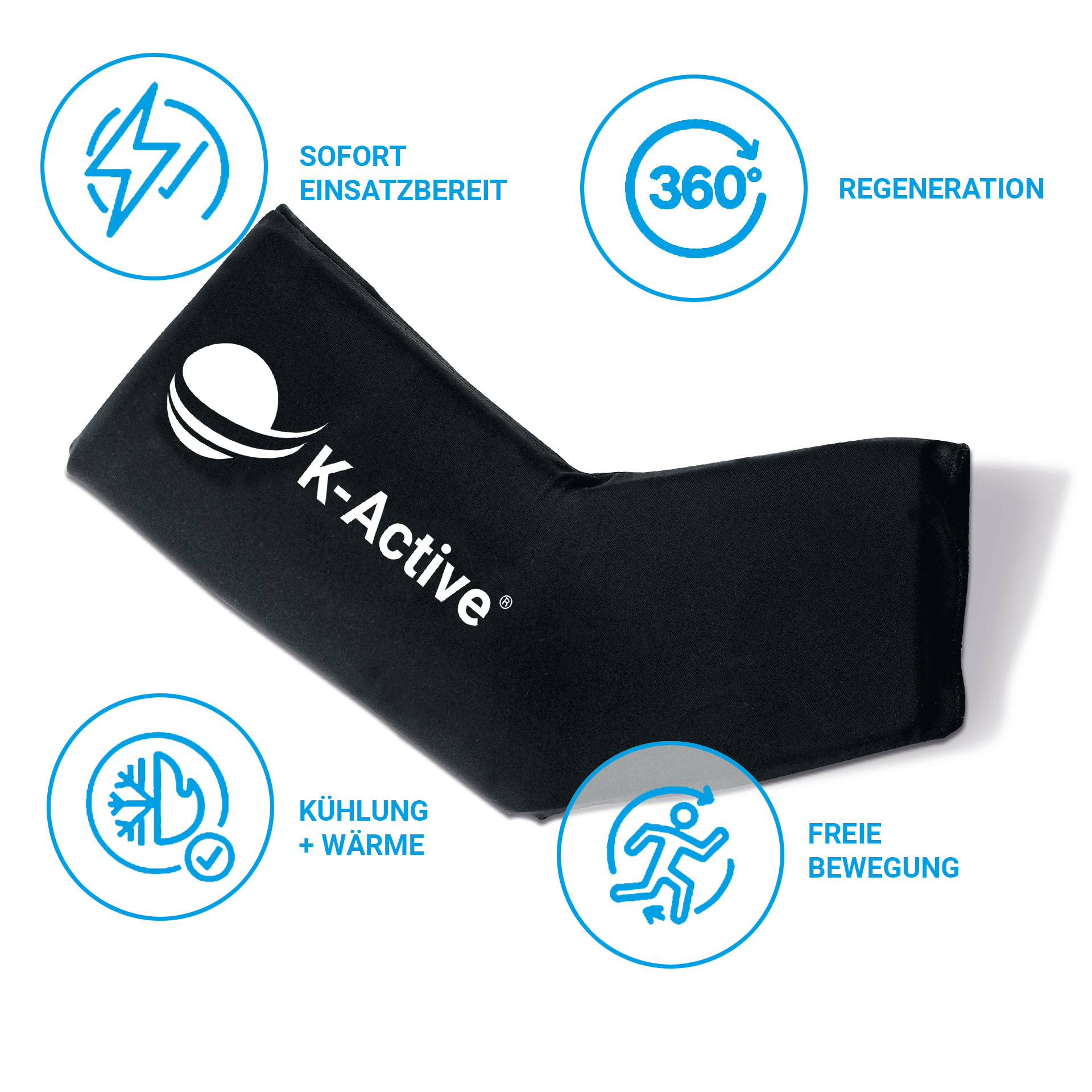 Injuries don’t follow schedules. That’s why K-Active Ice Sleeves are designed to provide immediate relief, often even without pre-cooling. As reusable cooling and heat sleeves with integrated compression, you simply pull them over painful areas such as the arm, calf, knee, or ankle. Thanks to the innovative material, excess energy is drawn from the tissue right away, helping to modulate inflammatory responses and deliver effective pain relief, without waiting around or dealing with melting ice packs. Unlike conventional stiff gel packs, the elastic sleeve fits like a second skin, creating a full 360° effect. It removes excess heat, compresses the entire area, and still allows movement. Simple, smart, and incredibly effective.