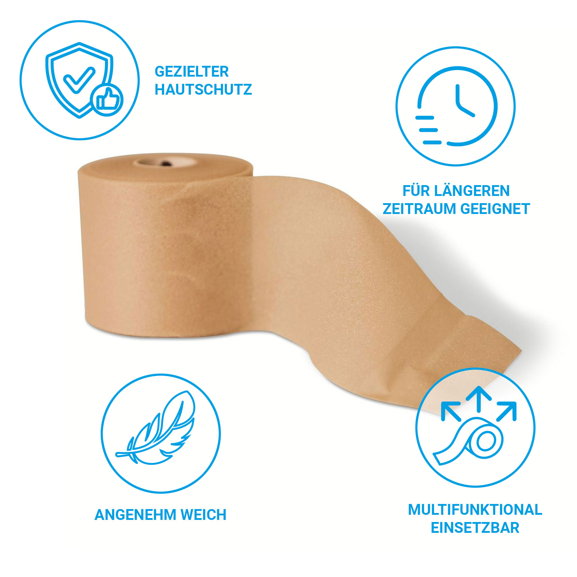 Discover our new underwrap bandage, the invisible protection layer for your skin! It provides the ideal barrier when applying sports tape or other adhesive bandages, helping to prevent skin irritation. When removing adhesive tapes, the underwrap ensures your skin stays unharmed and protected.