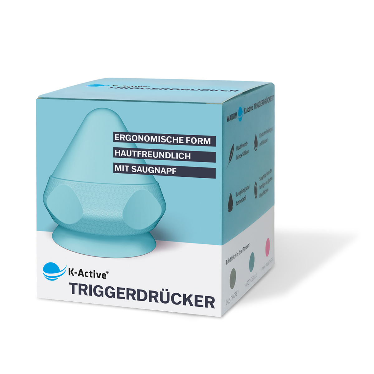 Trigger point massage on your own body has rarely been so easy! With the large suction cup you place your trigger pusher slip-proof on a smooth surface. The ergonomically shaped K-Active® Triggerdrücker fits comfortably in your hand and allows you to easily and effectively self-treat muscle pain. Whether at home, in the office, on the road or during sports - with the targeted pressure blockages can be solved - without straining your thumbs and fingers.
