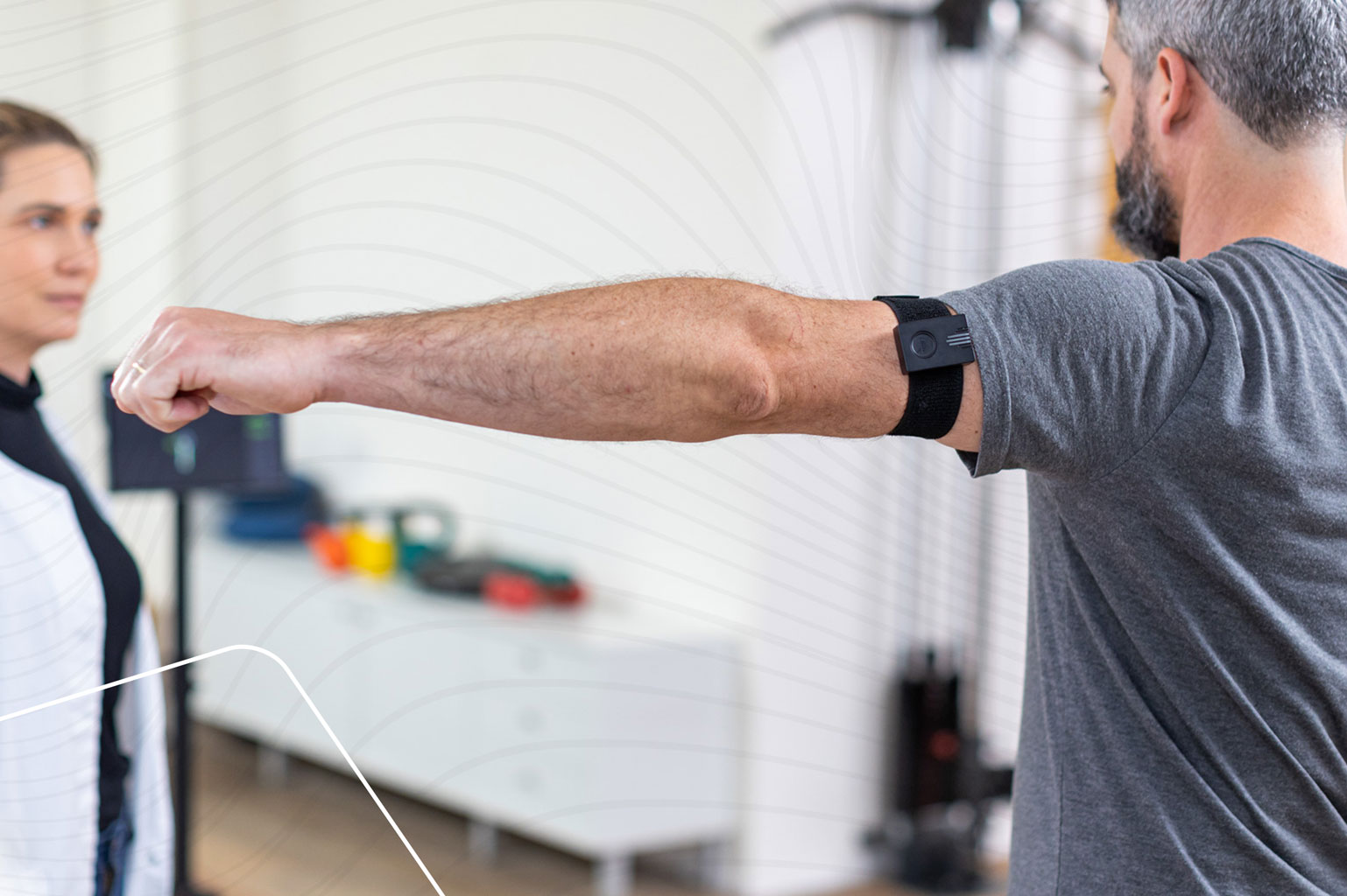 Measuring and training ROM: The sensor can be detached from the board and attached to the body with Velcro. This allows the range of motion (ROM) to be digitally recorded, visualized, and automatically documented. Therapists can set the desired ROM in the app, which is ideal for rehabilitation following joint injuries.