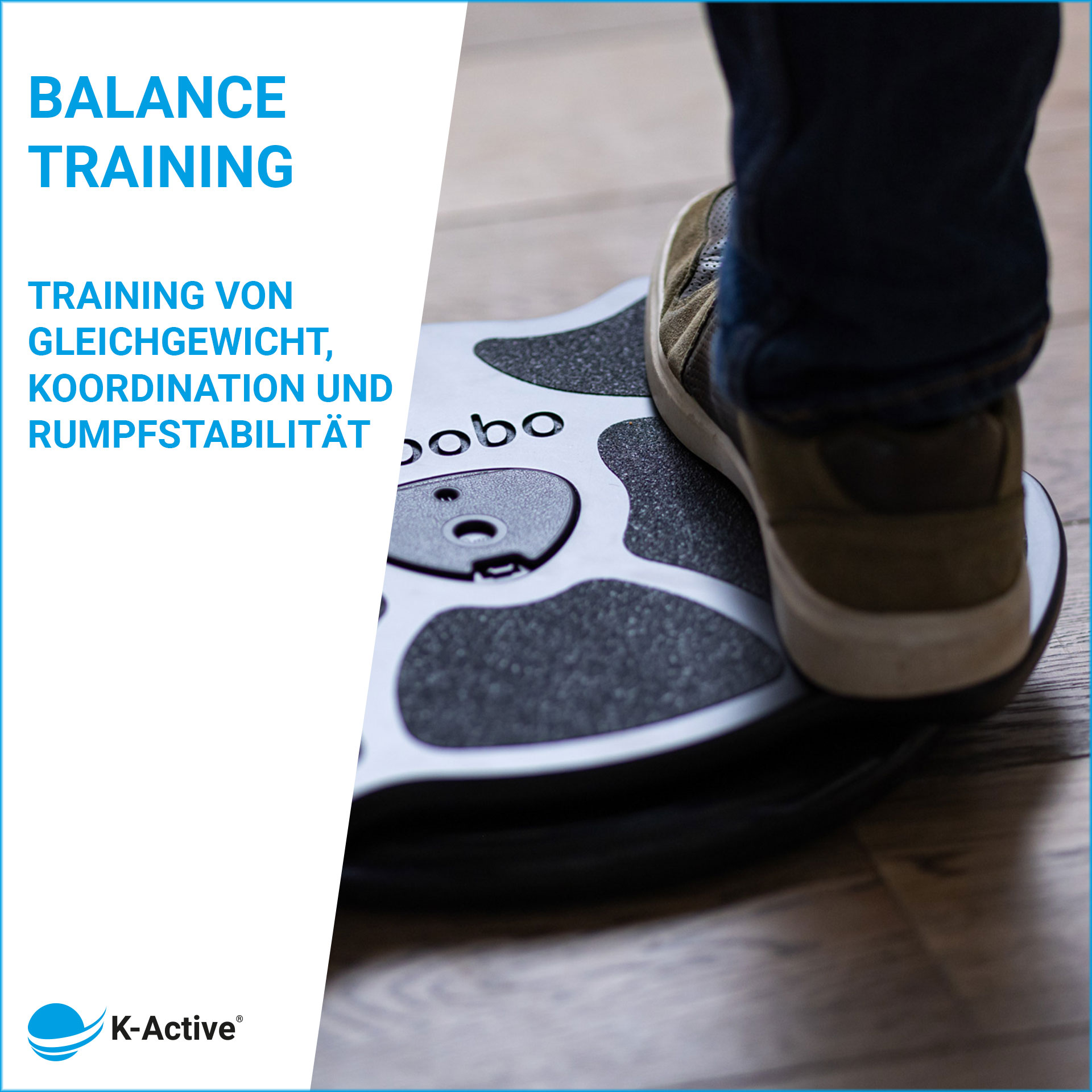 A balance cushion is included in the package. Alternatively, the board can also be placed on other unstable surfaces, such as Airex mats or balance pads, to vary the level of difficulty.