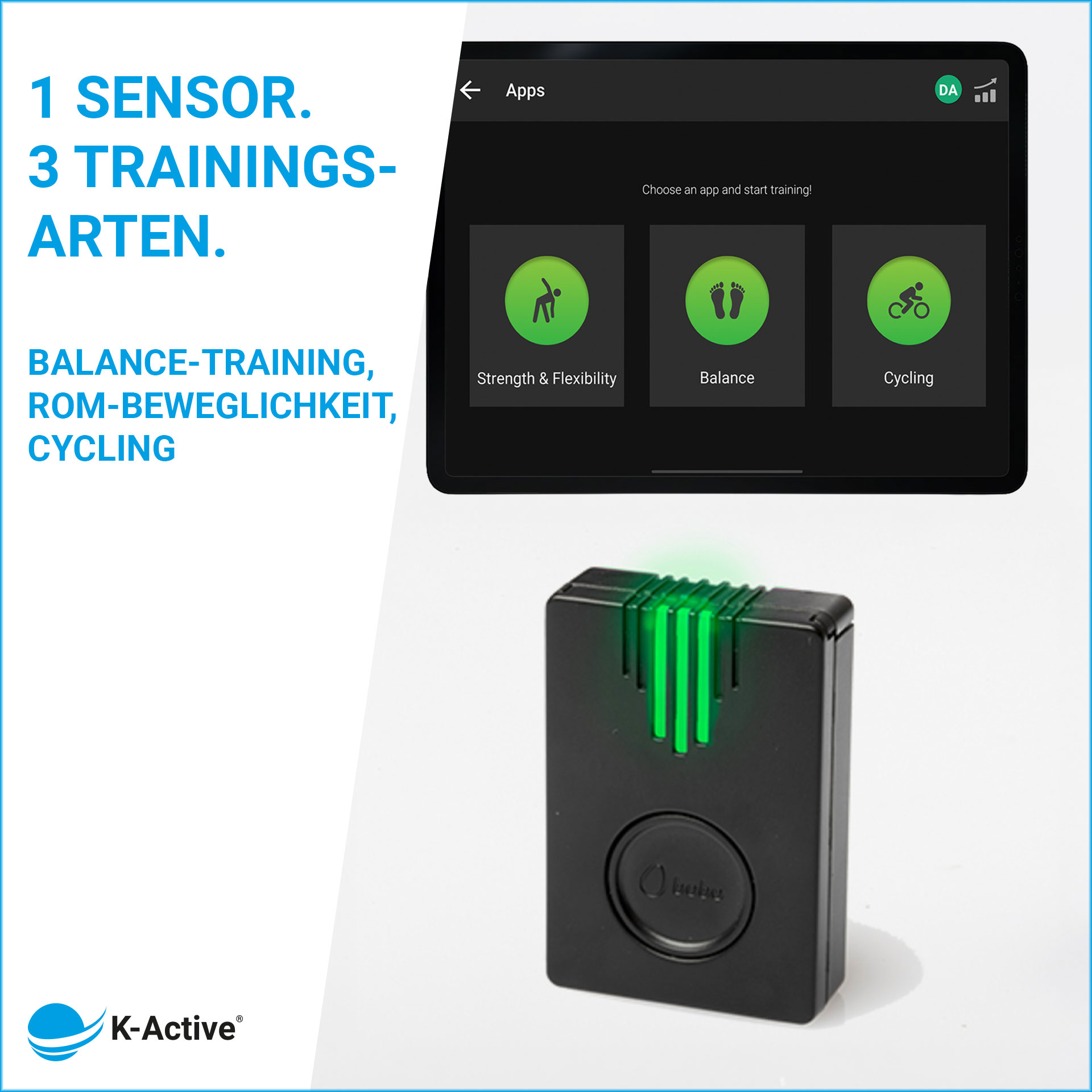 - Lieferumfang: 1x Balance Board, 1x Bewegungssensor, 3x Klettband