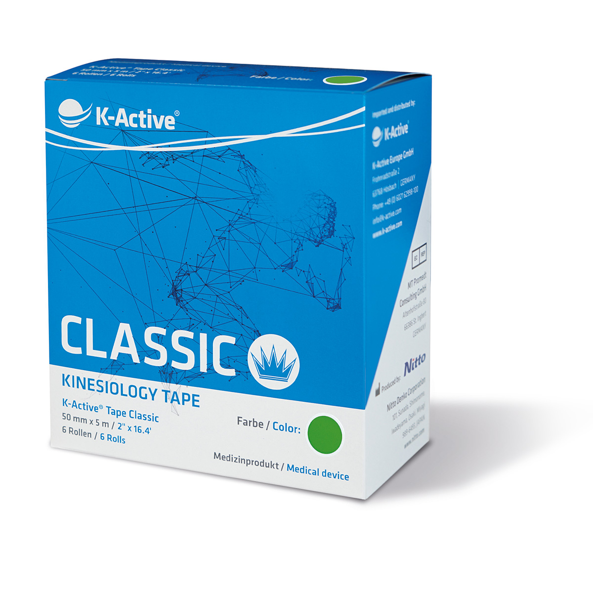 K-Active® Tape Classic 7,5 cm 4er-Box Unser Allrounder im Vorteilspack! Der Ursprung aller Kinesiologischen Tapes! ... wenn es mal etwas mehr Tape für deine Patienten und Sportler sein muss! Was du erwarten kannst Seit seiner Geburtsstunde vor über 30 Jahren hat Nitto Denko die Eigenschaften und die Herstellung des K-Active Tape Classic kontinuierlich optimiert, um dir genau das zu bieten, was du von einem Original erwarten: hypoallergenen Acrylkleber beste Hautverträglichkeit atmungsaktives, elastisches Baumwollgewebe Schadstofffreiheit zuverlässigen langen Halt hinterlässt keine Rückstände faires Preis-Leistungs-Verhältnis jahrelang angewandt von führenden Ärzten und Therapeuten in den Bereichen Sport und Medizin Für Ihre Sicherheit Diese langjährige Produktionserfahrung bedeutet parallel auch über 30 Jahre Therapieerfahrung mit den original Nitto Denko Tapes. Diese zusammen mit Bachelorarbeiten sowie Studien garantieren höchste Sicherheit für die Anwender in aller Welt, was Ihnen kein anderes Kinesiologisches Tapeprodukt auf dem weltweiten Markt bieten kann!K-Active Tape Classic XXL - Die 17m lange Rolle!Ihr Vorteil: Reduzierter Preis bei großem Tapeverbrauch in Krankenhäusern, Praxen und beim Sport! Produktdetails: Inhalt: 4 Rollen Maße je Rolle: 7,5 cm x 5 m