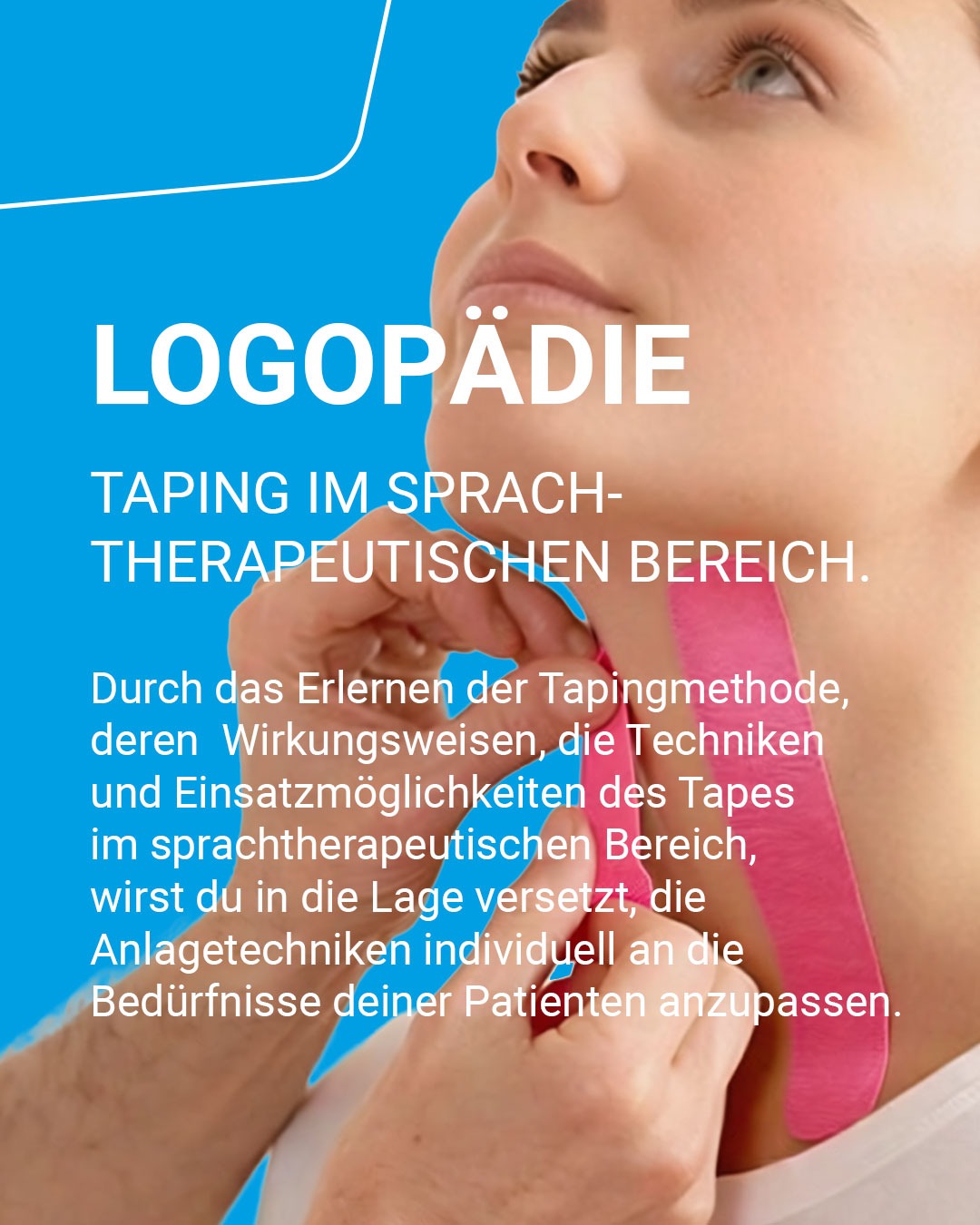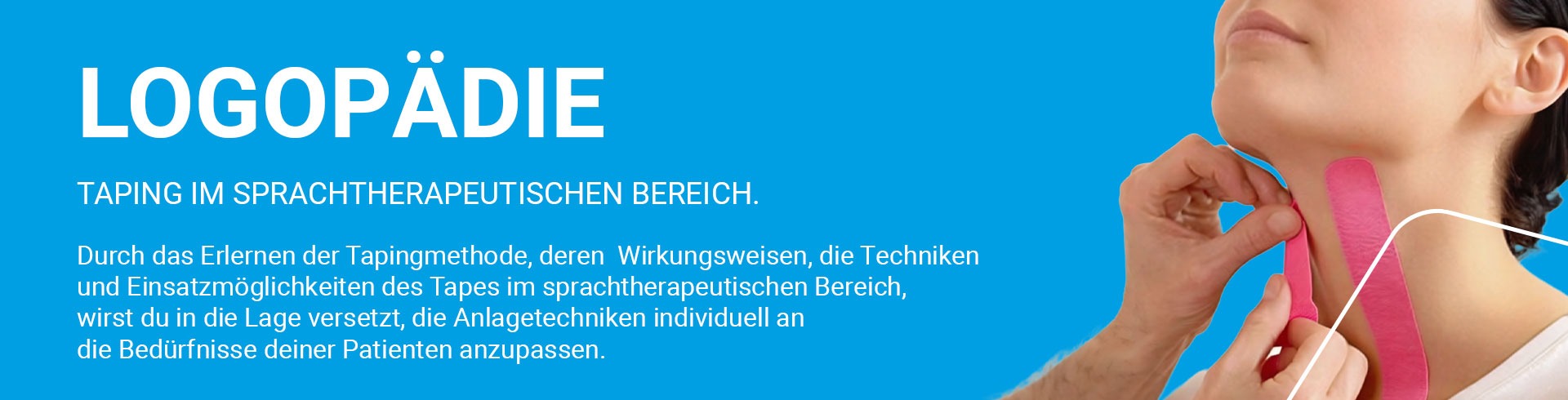 Im Sonderkurs „Logopädie“ zeigen wir dir, wie Kinesiologisches Taping die Behandlungen und Therapien wirkungsvoll unterstützen kann.