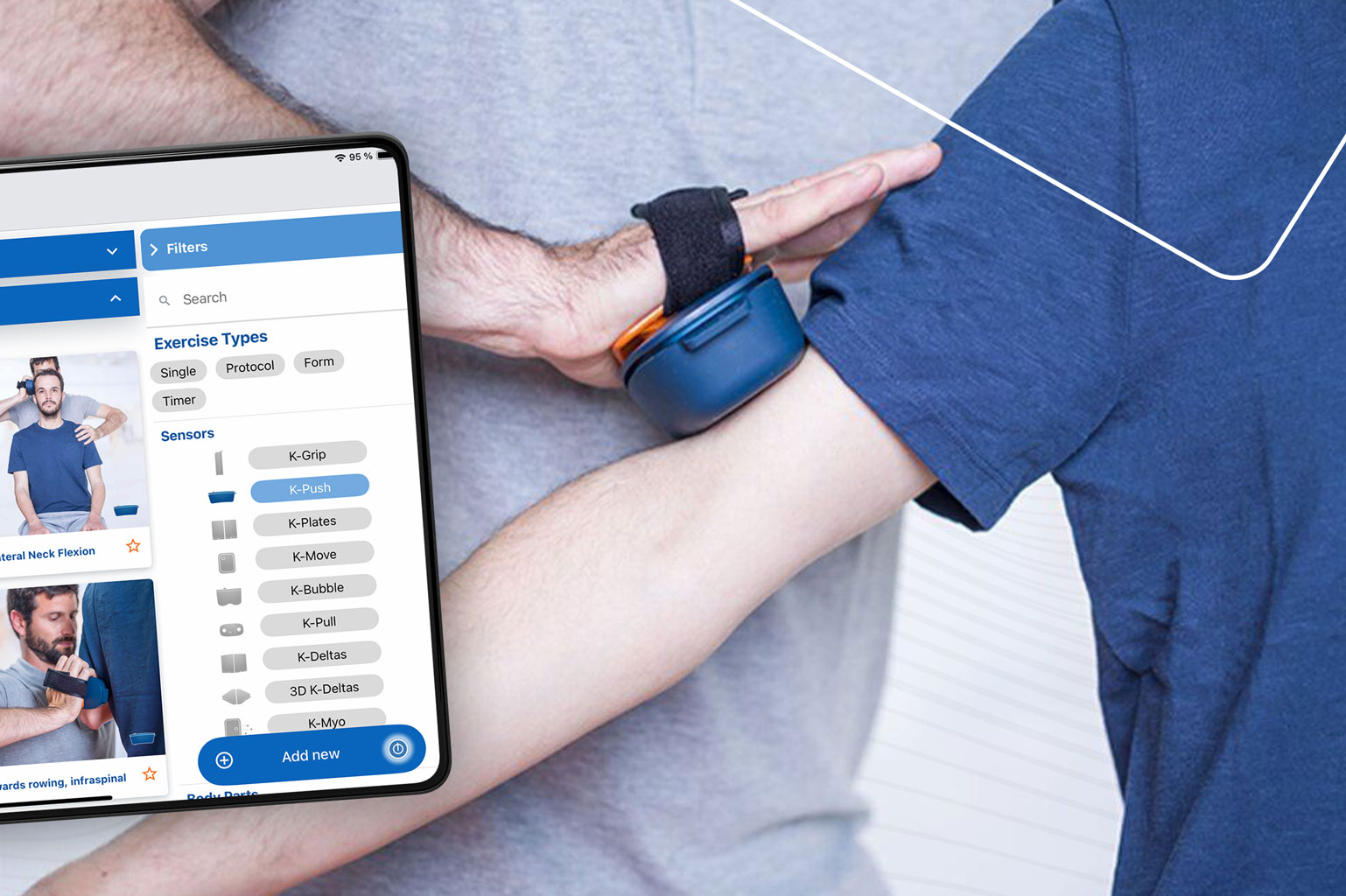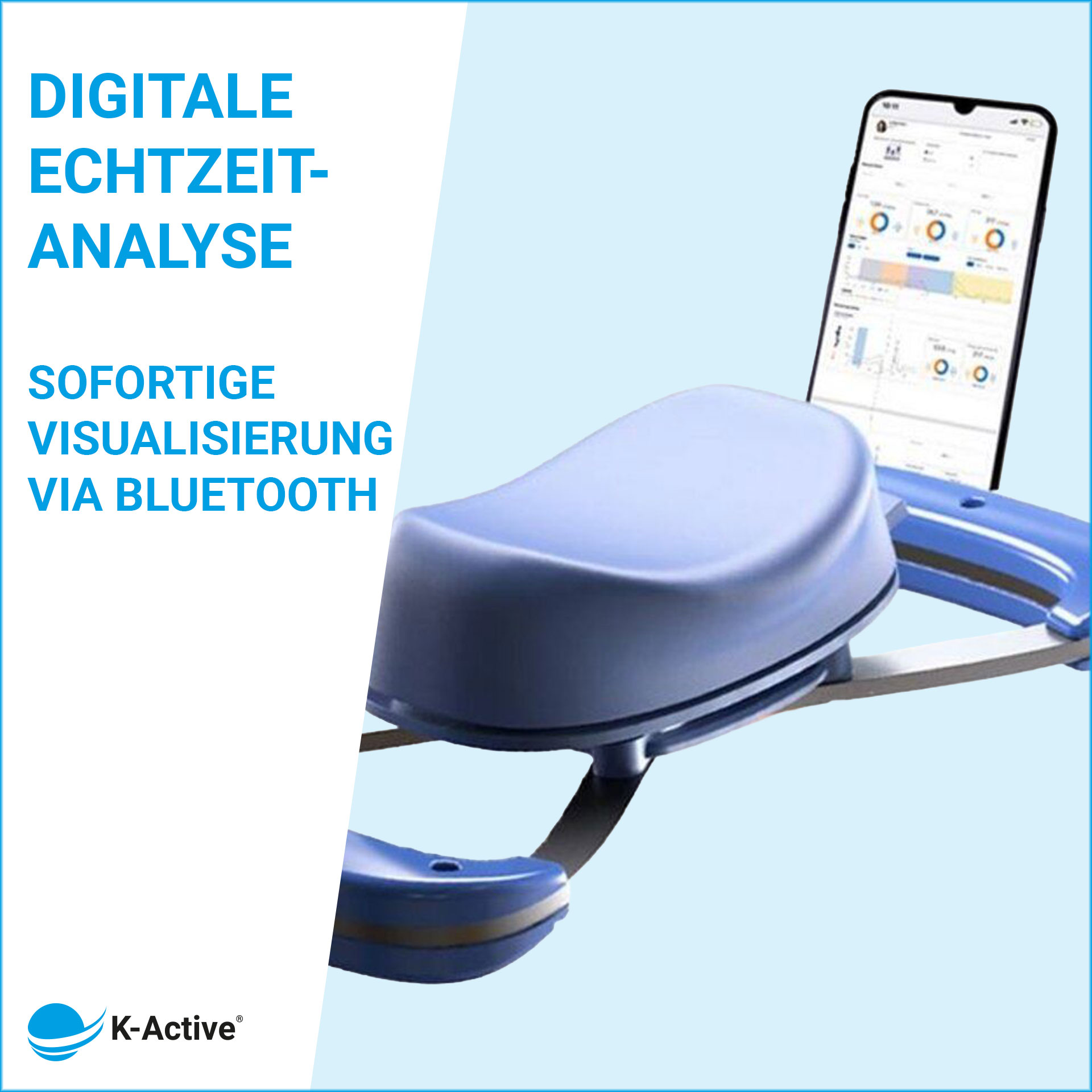 Der K-Push V3 verbindet sich kabellos via Bluetooth mit der Kinvent-App auf Smartphone oder Tablet. Die Kraftwerte werden in Echtzeit visualisiert und unmittelbar gespeichert. Neben Peak- und Durchschnittswerten lassen sich Seitenvergleiche, Kraftentwicklungen sowie Verlaufsanalysen strukturiert darstellen. Zusätzlich können Trainingseinheiten direkt integriert, Fortschritte langfristig dokumentiert und relevante Berichte strukturiert exportiert werden, beispielsweise für Ärzte, Kostenträger oder Trainer.