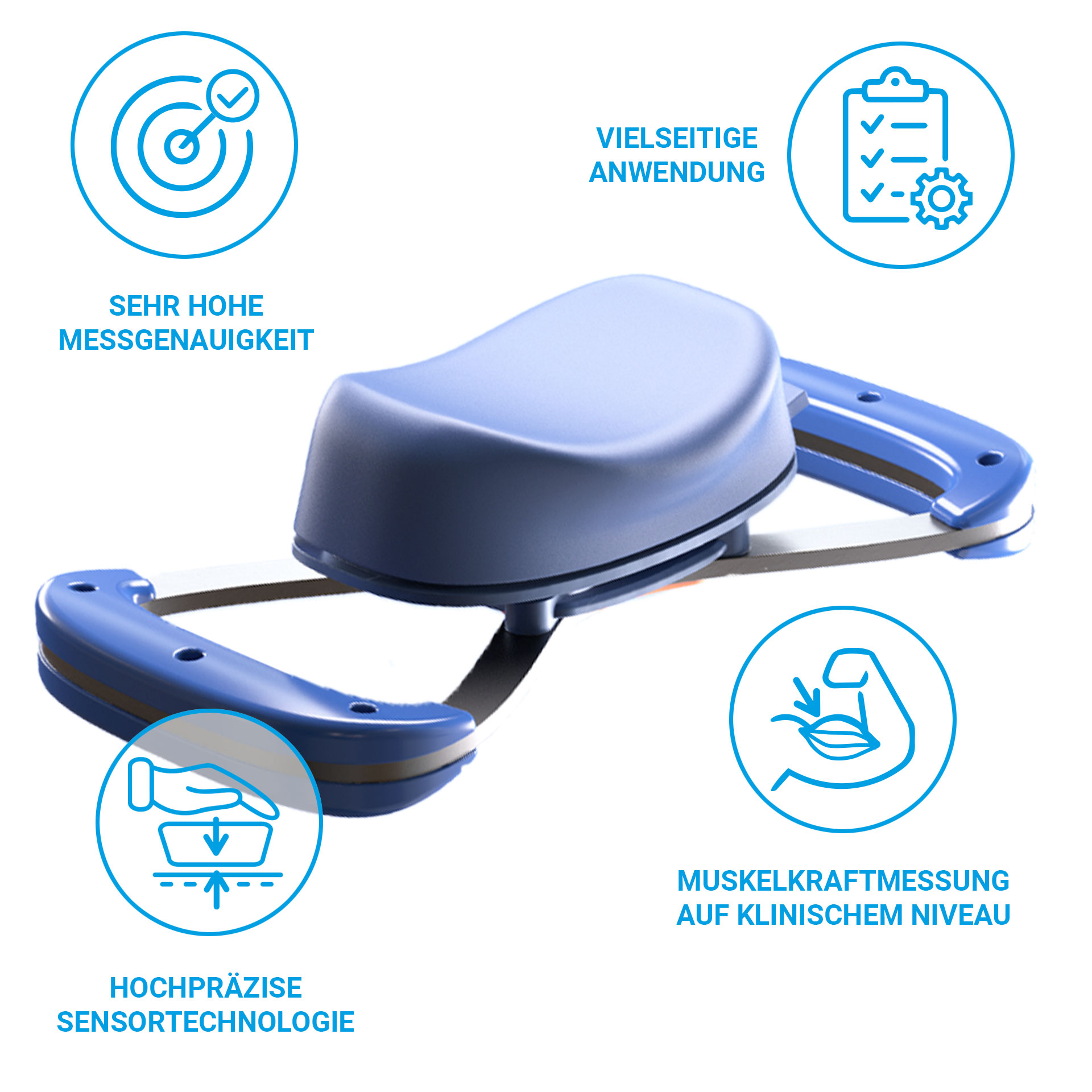 Durch die präzise Erfassung von Kraftspitzen und Kraftverläufen können Defizite, muskuläre Dysbalancen sowie inter-/intraindividuelle Unterschiede differenziert analysiert werden. Die hohe Sensitivität ermöglicht zudem eine valide Bewertung kleinster Leistungsfortschritte, ein entscheidender Vorteil in Therapie, Leistungsdiagnostik und Trainingssteuerung.