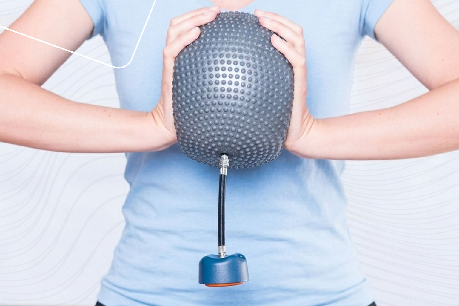 Der K-Bubble wird mit einem aufblasbaren Element (z.B. Ball, Rolle oder Kissen) verbunden. Über integrierte Sensoren misst er die Druckveränderung während der Übung und stellt diese in Echtzeit per Biofeedback als Kraftwert dar.