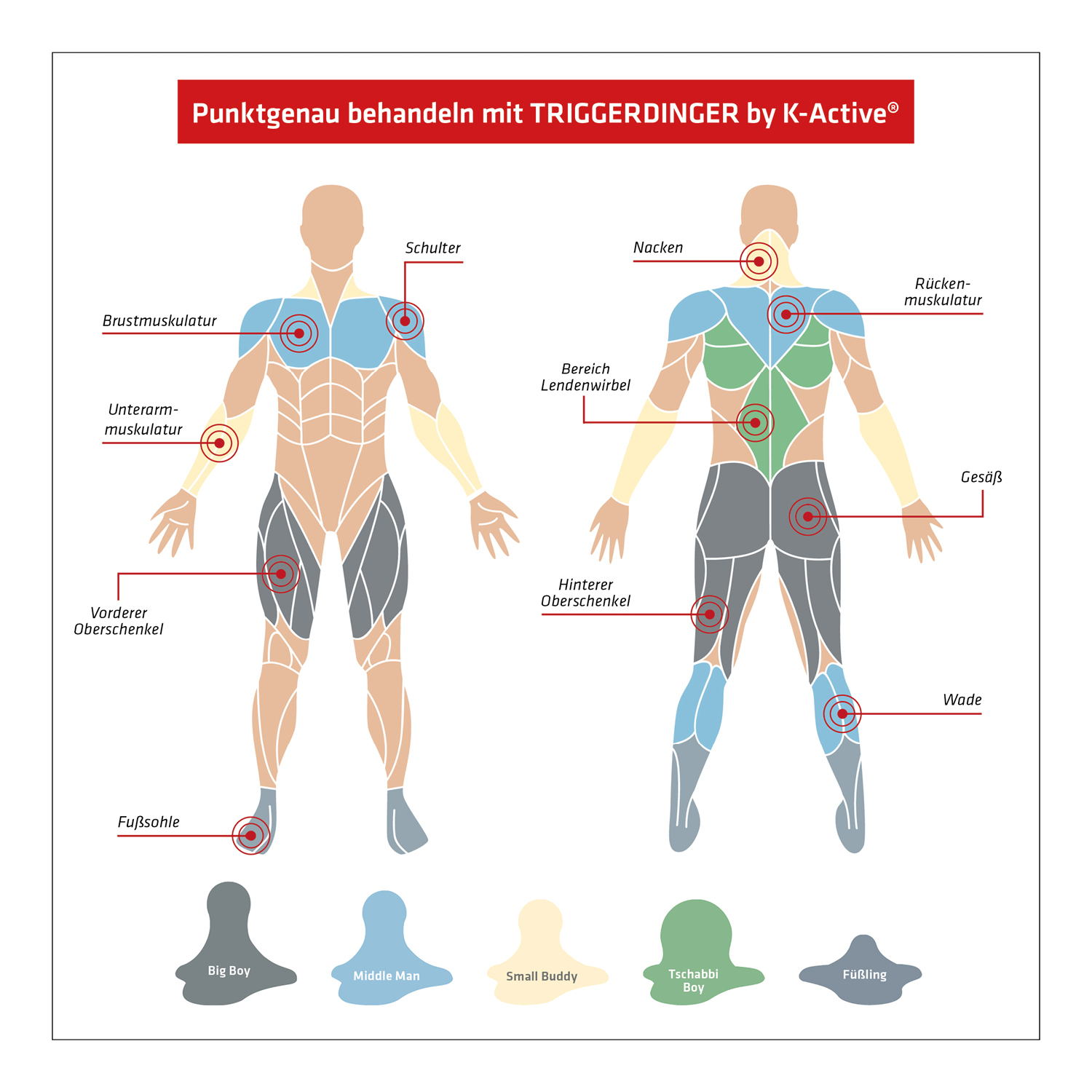 Als erster Exklusivhändler von Triggerdinger in Deutschland bekommst du bei K-Active® die gesamte Palette der Massagetools Made in Germany.